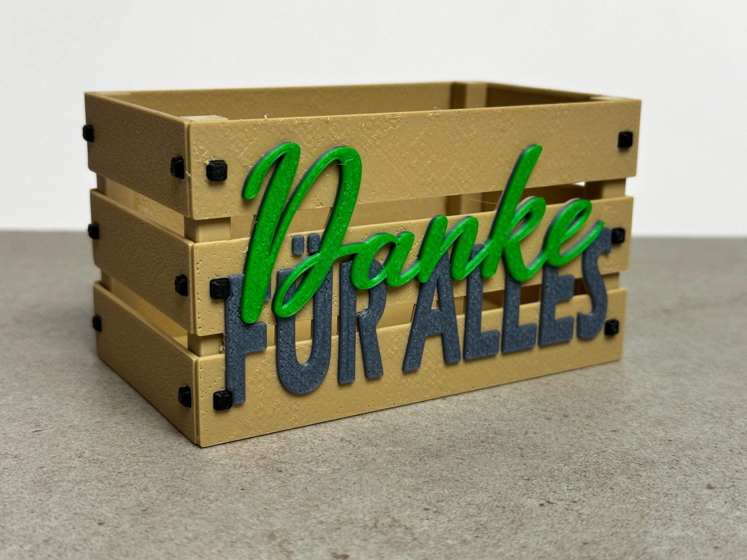Der Schriftzug wird von uns im 3D-Druck-Verfahren aus PLA speziell für Sie hergestellt.