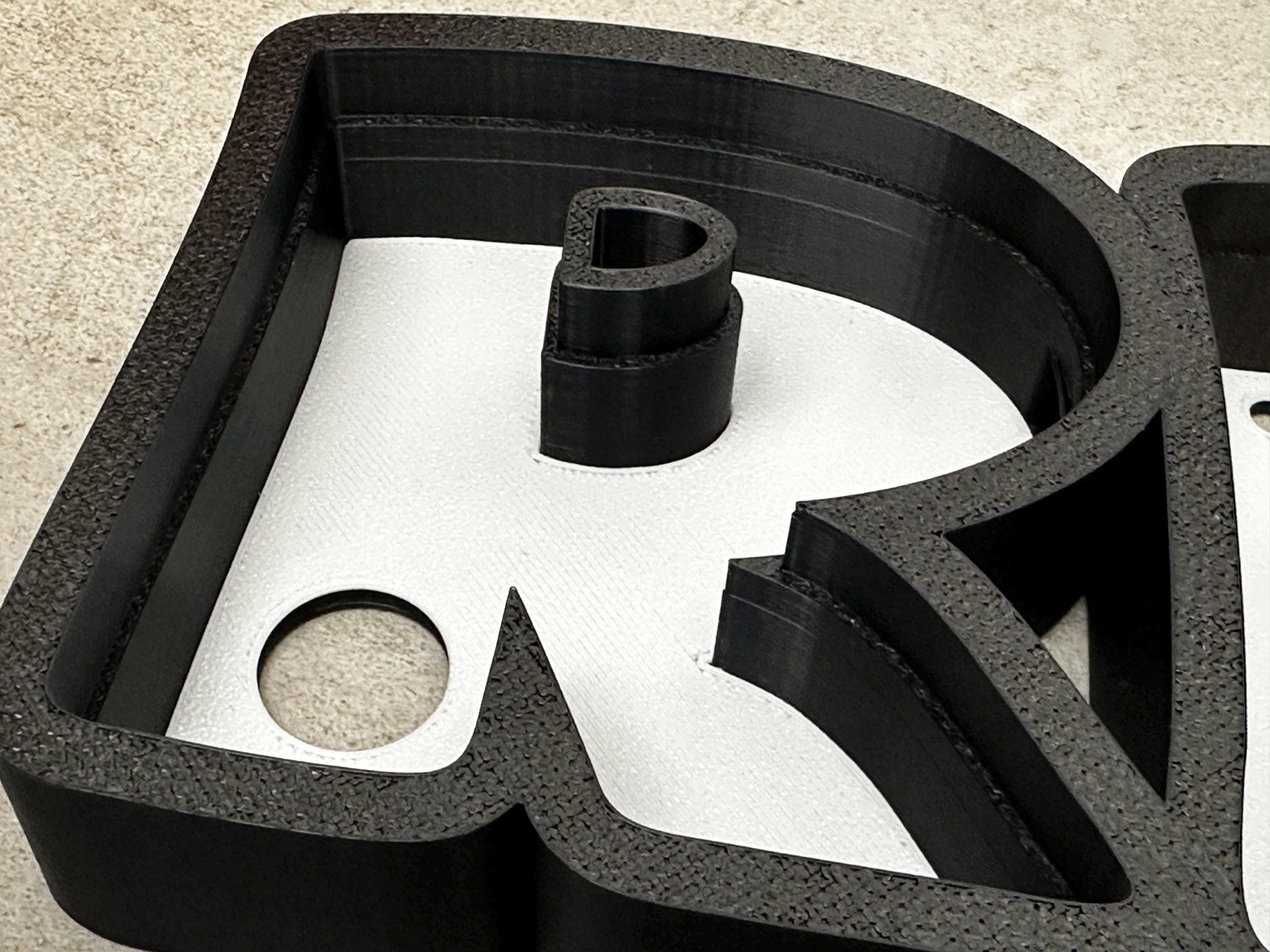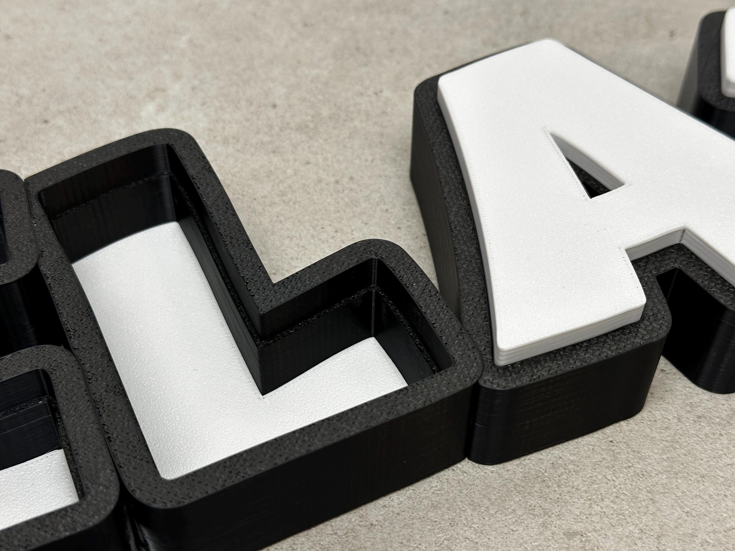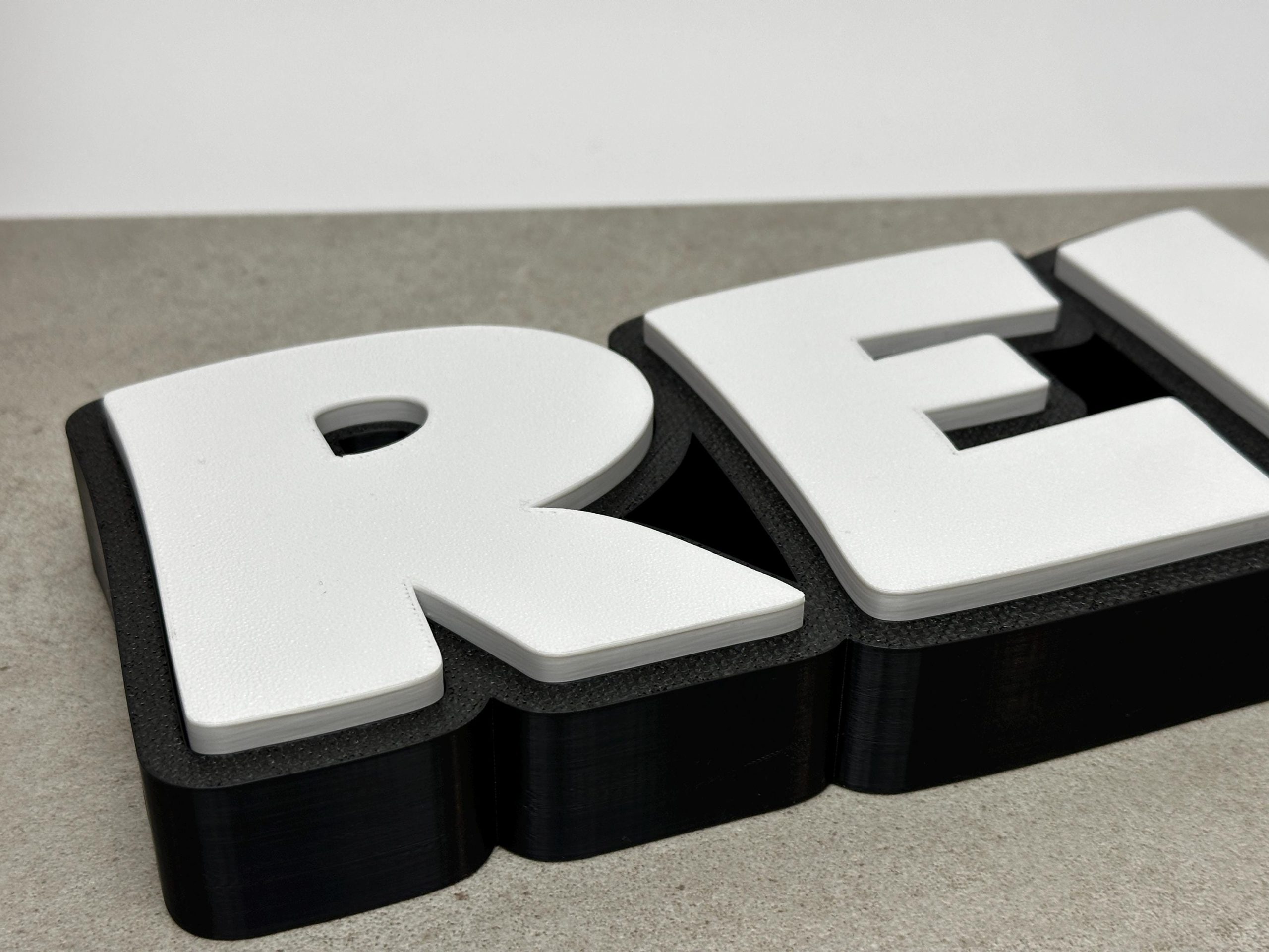 Der Schriftzug wird von uns im 3D-Druck-Verfahren aus PLA speziell für Sie hergestellt.