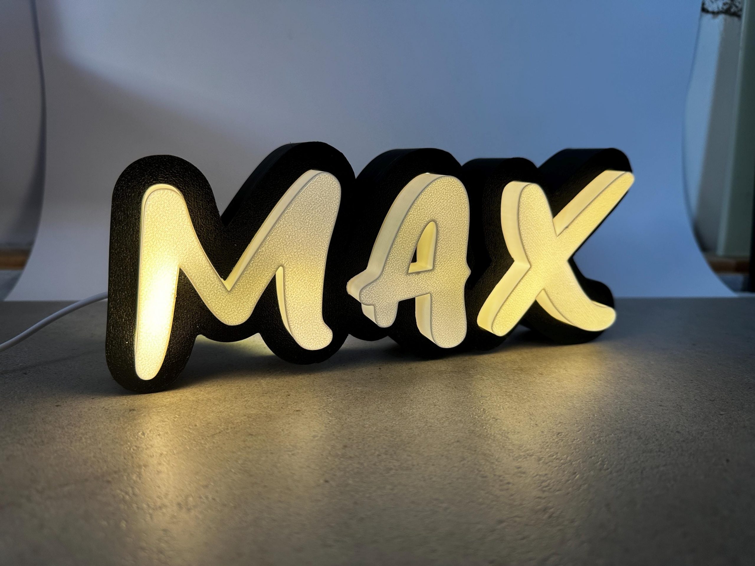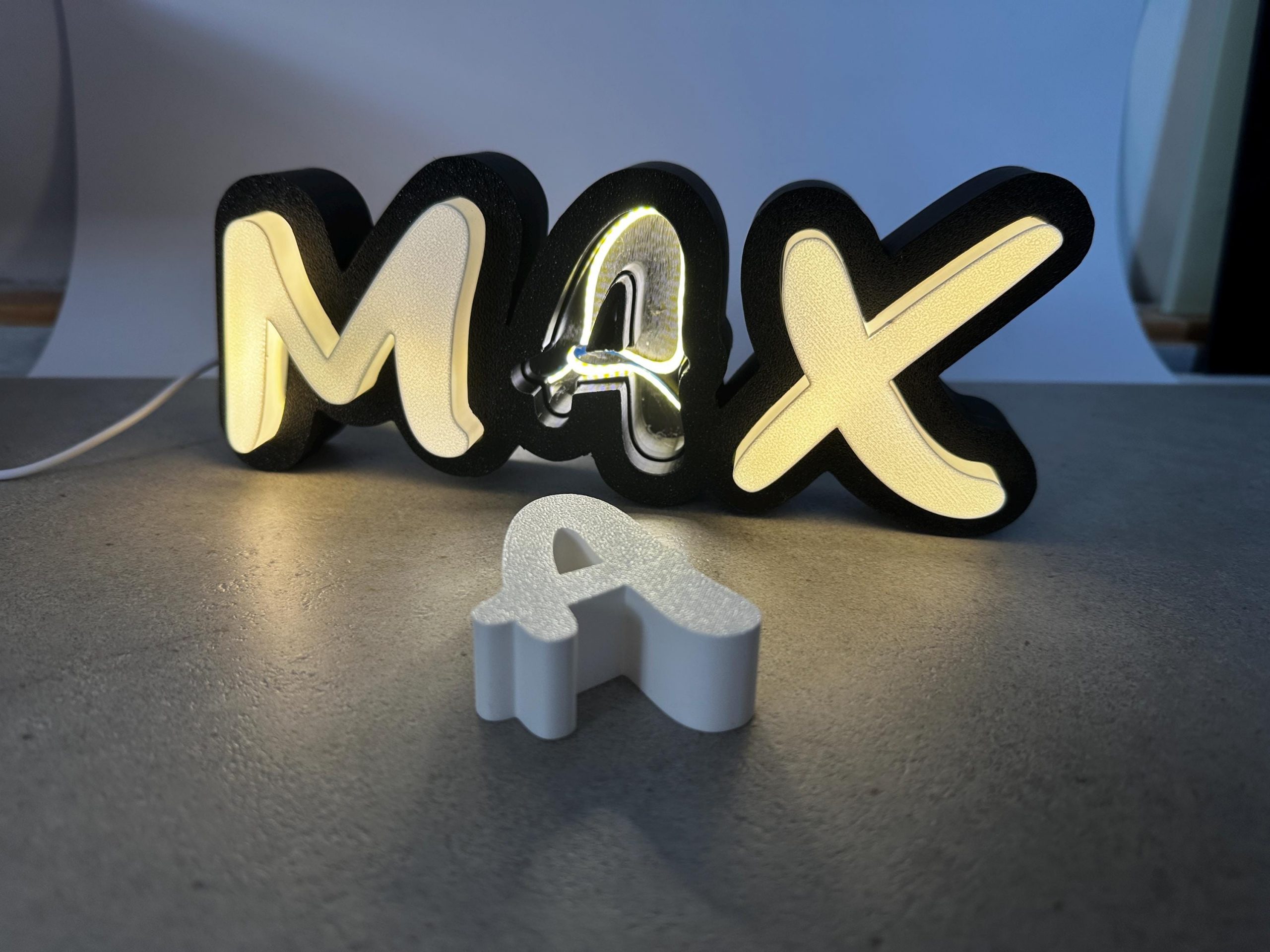 Die Buchstaben sind mit jedem handelsüblichen LED Strip nachzurüsten. Da es einfach zu viele verschiedene LED Strips gibt (RGB / RGBIC / Steuerbar über Alex, Google Home, Bluetooth, etc) überlasse ich euch die Auswahl selbst.