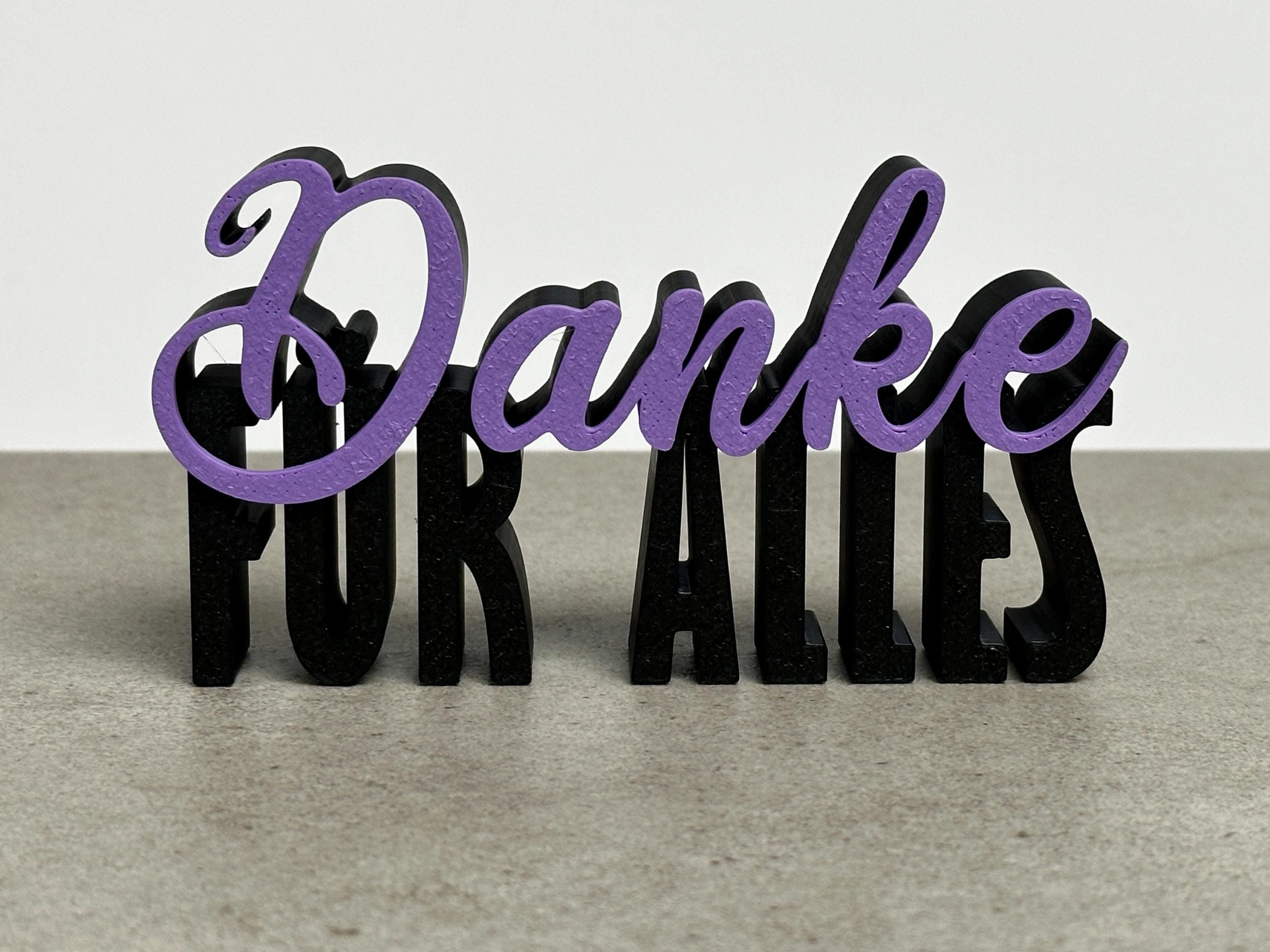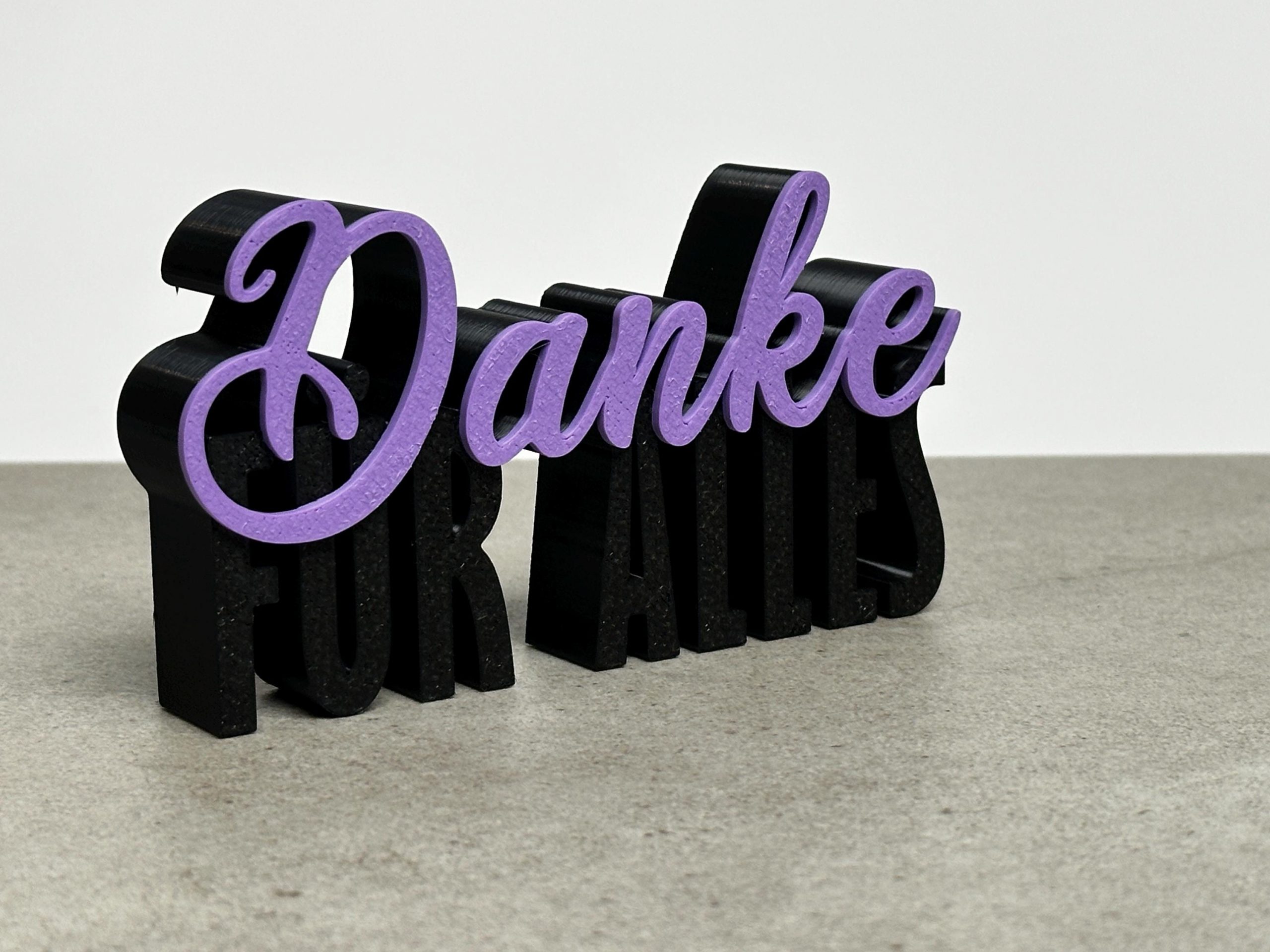 Der Schriftzug wird von uns im 3D-Druck-Verfahren aus PLA speziell für Sie hergestellt.