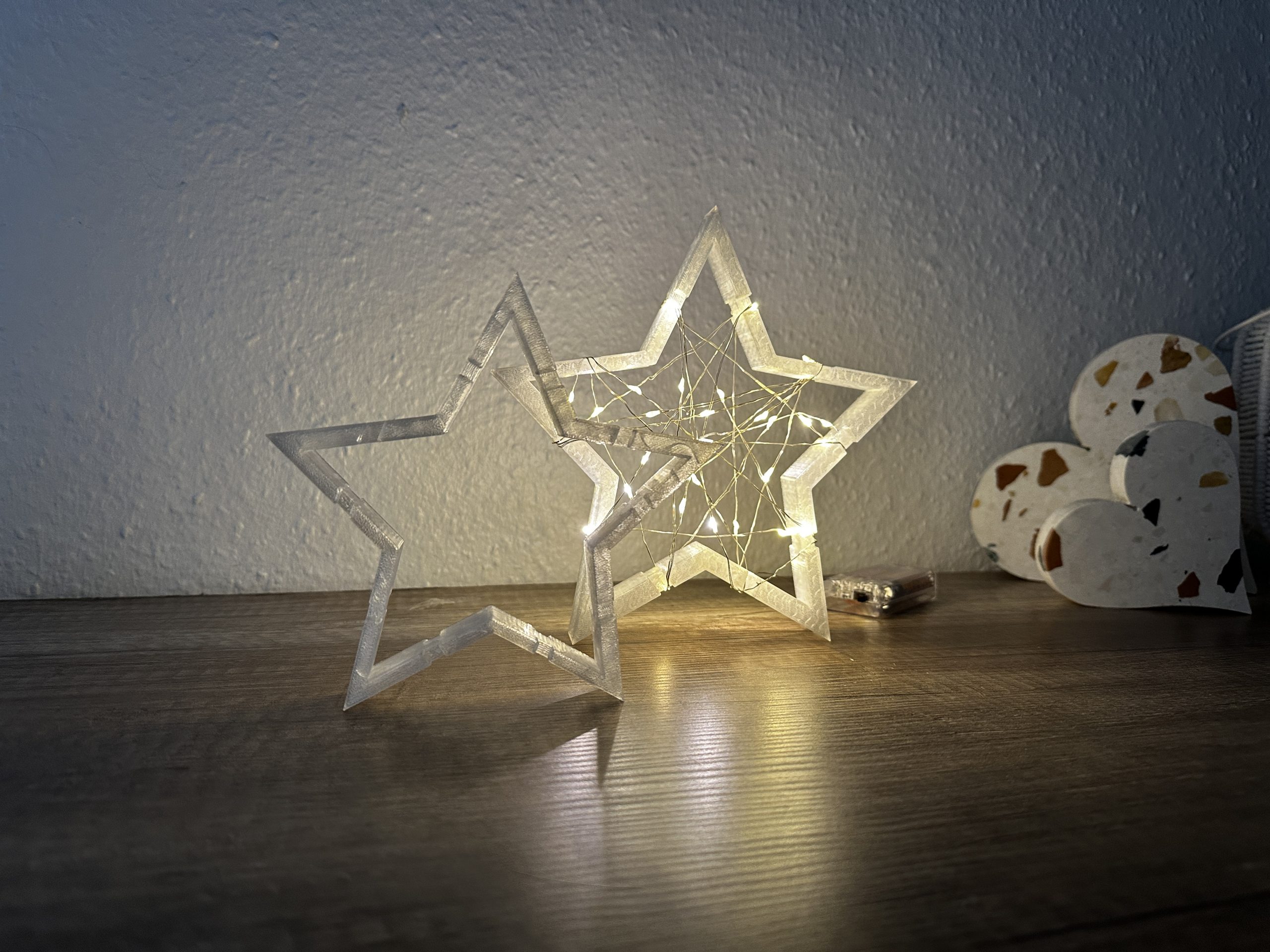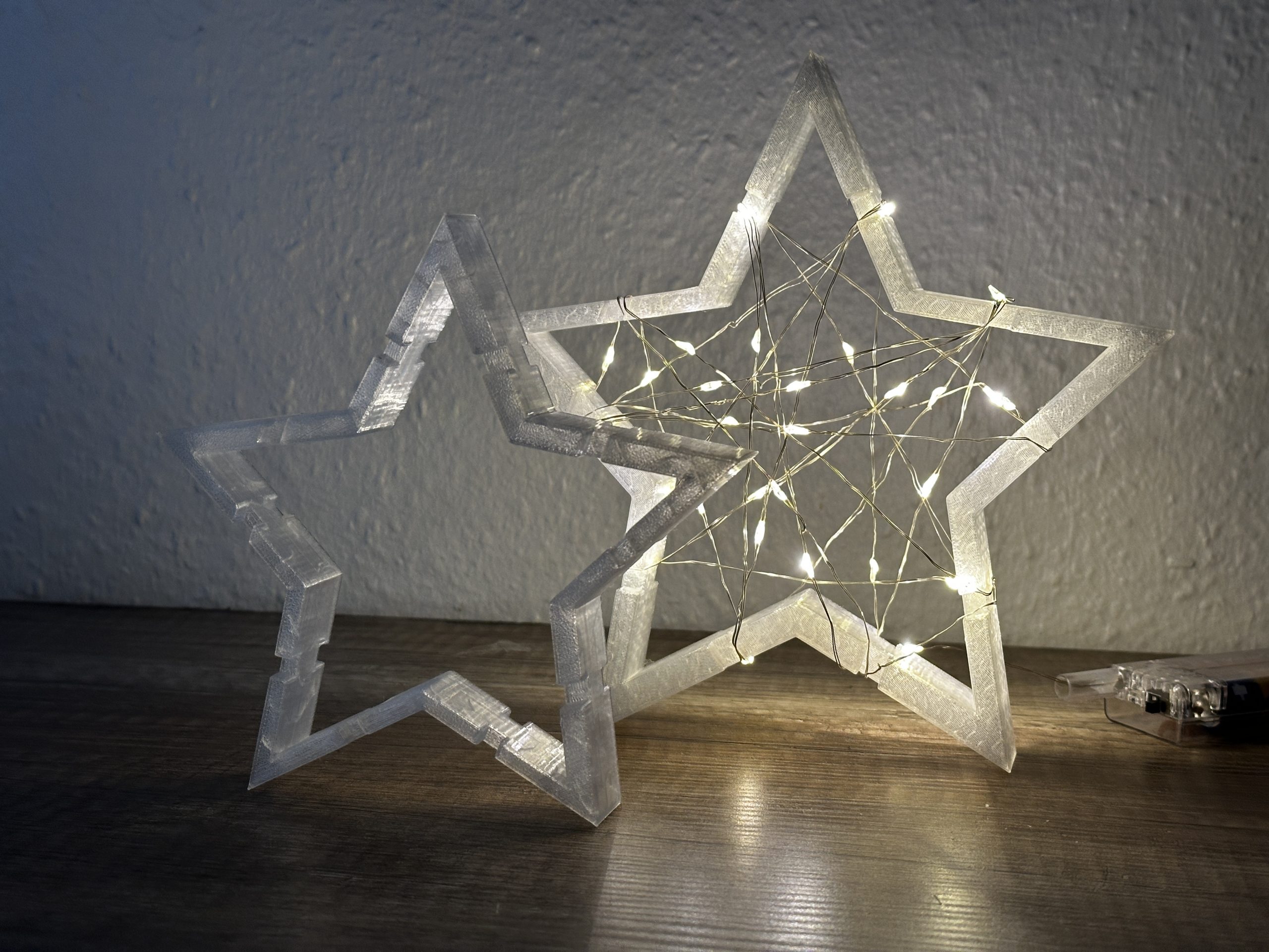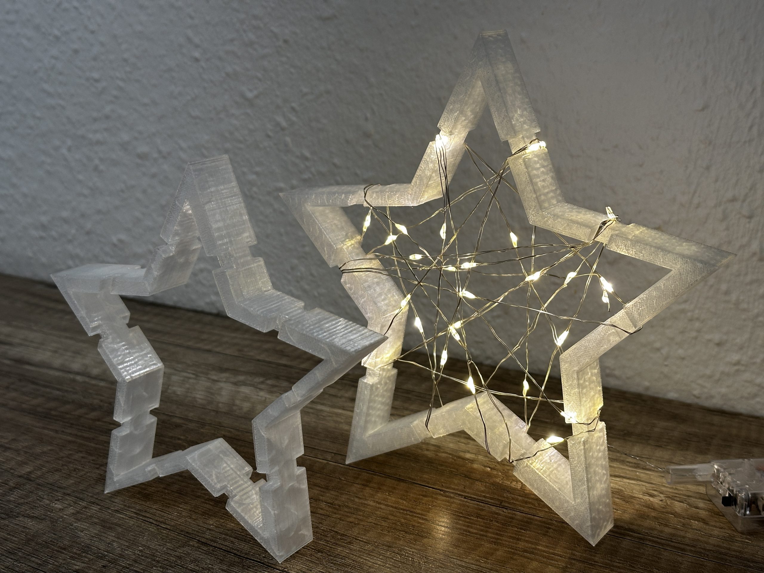 Standardmäßig drucken wir die Sterne in einem translucenten (lichtdurchlässig / halbtransparent) PLA.